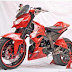 Because the swing arm naked, so it is fitting that the single rear suspension (monoshock) utilizing a Suzuki Satria 120R. Continues, a full custom body, according to Arno, self-designed single-seater model.